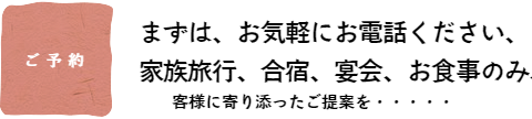 ホームページではお伝え出来ない近隣情報や季節のご案内、小さいお子様がおられるお母さんの宿での過ごし方、お食事に関する事など、なんなりとお問い合わせください。